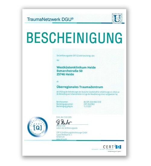 Die Westküstenkliniken sind übrigens die einzige Klinik an der schleswig-holsteinischen Westküste/Unterelbe, die als Cardiac Arrest Center zertifiziert worden ist. Das Zertifikat ist bis 2024 gültig und wird regelmäßig überprüft.
