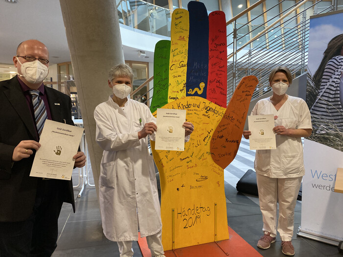 Die Westküstenkliniken sind als zweites Krankenhaus in Schleswig-Holstein mit dem Gold-Zertifikat der „Aktion Saubere Hände“ ausgezeichnet worden. Mit der Urkunde würdigt die Initiative Einrichtungen, in denen besonders intensiv auf Händedesinfektion geachtet wird.