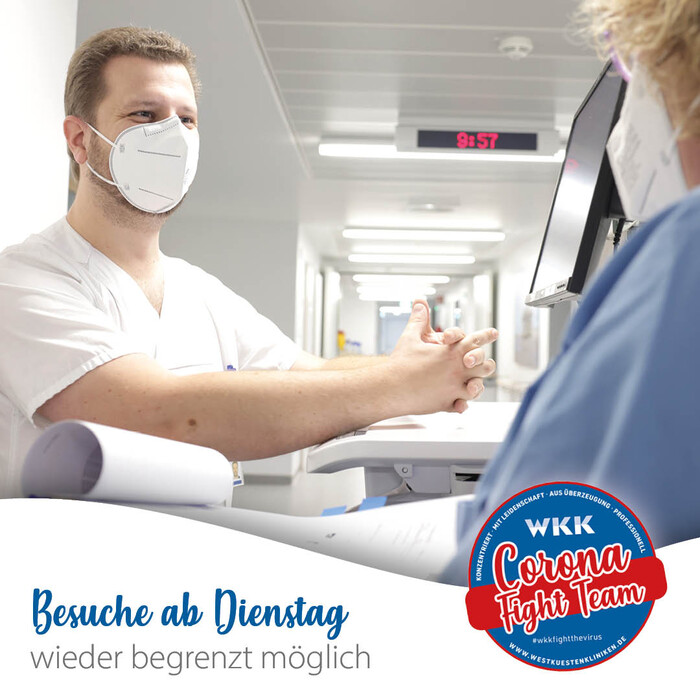 Von kommender Woche an sind in den Westküstenkliniken Brunsbüttel und Heide wieder Besuche möglich. Ab Dienstag dürfen Patient*innen täglich von einer Person für eine Stunde Besuch empfangen. Alle Besucher*innen müssen durchgängig eine FFP-2-Maske tragen und einen negativen Corona-Tests einer offiziellen Teststelle vorlegen, der nicht älter als 24 Stunden sein darf.