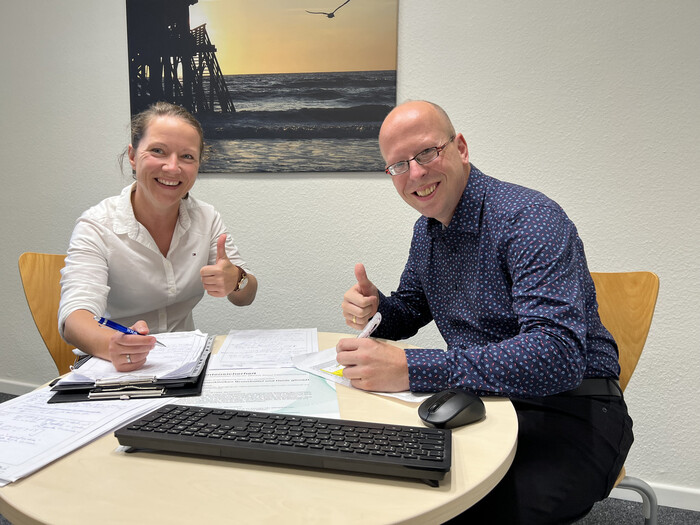Daumen hoch: Die Patientensicherheitsbeauftragte Janine Schipnewski und der Leiter der Qualitätsmanagements, Björn-Ola Fechner, freuen sich über die erneute erfolgreiche Prüfung der Westküstenkliniken.
