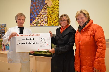 Mit Hilfe der Spende, in Höhe von 300 Euro, werden Familien mit schwerkranken Kindern unterstützt. "Nach der Entlassung aus dem Krankenhaus wissen viele Eltern nicht, wie sie mit der neuen Situation und vielfältigen Problemen, die diese oft mit sich bringt, umgehen sollen. Hier setzt die Arbeit des Bunten Kreises Nord an.", erläutert Chefärztin PD Dr. R.-Christiane Seitz. Gut ausgebildete Case-Managerinnen leisten dabei in den Familien über mehrere Wochen persönliche Hilfe zur Selbsthilfe. 40 bis 50 Kinder aus ganz Schleswig-Holstein werden so pro Jahr vom Bunten Kreis Nord betreut.