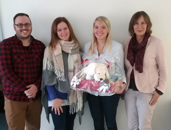 Nach der Spendenübergabe (v. li.) Christian Strehl (Schröder Bauzentrum), Nadine Lindemann (Case Managerin, Bunter Kreis Nord), Nicole Diercks (Schröder Bauzentrum) und Heike Meyn (Sozialberatung, Bunter Kreis Nord).