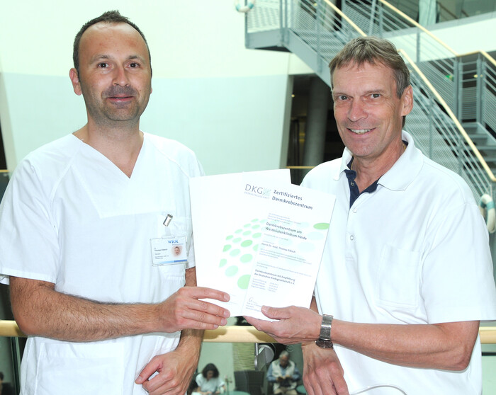 Das Darmkrebszentrum der Westküstenkliniken am Standort Heide und die internistische Praxis von Dr. Rolf Böger im MVZ Heide sind erneut erfolgreich von der Deutschen Krebsgesellschaft (DKG) zertifiziert worden. Die Prüfer lobten die hohe Innovationsbereitschaft und das Engagement der Behandlungsteams.