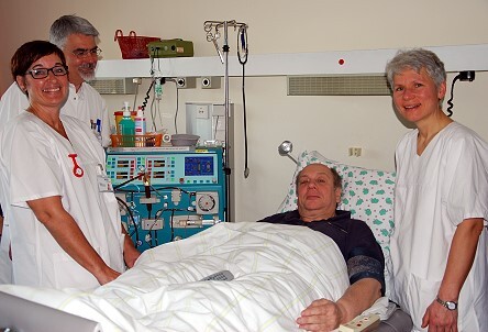 Erste Ansprechpartner für die Patienten auf der Station sind jedoch die Pflegekräfte unter der Leitung von Kerstin Engelbrecht-Witt, die selbst über die pflegerische Fachweiterbildung Nephrologie verfügt. Aber auch die anderen Pflegekräfte sind im Bereich der Dialyse entsprechend qualifiziert worden. Sie bilden für die Patienten die ruhenden Pole in der langjährigen Dauerbehandlung, zumal es in den vergangenen Jahren kaum eine Fluktuation im Team gegeben hat - ein wichtiges Zeichen für eine gute Stimmung bei der Arbeit. "Wir betrachten uns hier oft als eine große Familie und werden daher auch schon einmal von den Patienten zu runden Geburtstagen eingeladen", erzählt Kerstin Engelbrecht-Witt.