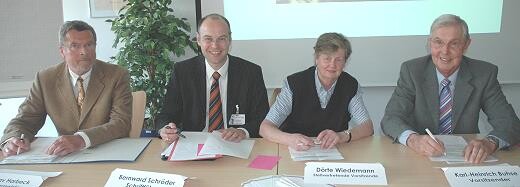 Landrat a. D. Karl-Heinrich Buhse (re.) ist auf der Jahreshauptversammlung des Vereins der Freunde und Förderer des Westküstenklinikums Heide in seinem Amt bestätigt worden. Dörte Wiedemann (2. v. re.) wurde zur stellvertretenden Vorsitzenden, Gustav Harbeck (li.) zum Schatzmeister, und Bernward Schröder ( 2. v. l.) zum Schriftführer gewählt. Noch ein Beschluss der Versammlung: Die anwesenden Mitglieder sprachen sich mehrheitlich dafür aus, den Jahresbeitrag nicht zu erhöhen.