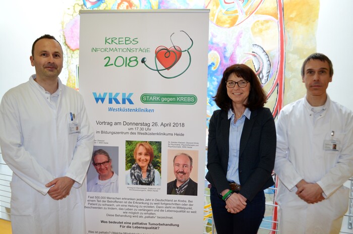 Das Thema steht daher im Mittelpunkt einer Veranstaltung am Donnerstag, 26. April, im Heider Bildungszentrum für Berufe im Gesundheitswesen. Ab 17.30 Uhr geben die Diakonin und Klinikseelsorgerin Annegret Steinmeyer, Dr. Karsten Kleinert, Oberarzt der Klinik für Psychiatrie, Psychotherapie und Psychosomatik, und Olaf Wulfen, Oberarzt der Medizinische Klinik 1, Antwort auf die Frage: Was bedeutet palliative Tumorbehandlung für die Lebensqualität.