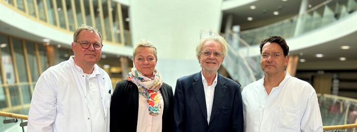 Die beiden Chefärzte des Zentrums, Dr. Marc Liedke (l.) und Prof. Dr. Erik Schlöricke (r.) gemeinsam mit Prof. Dr. Dr. Jakob Izbicki und der Koordinatorin des Zentrums, Kathrin Suhn.