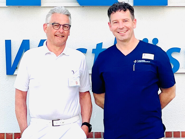 Chefarzt der Frauenklinik, Dr. Thomas Kunz gemeinsam mit dem Leiter des Universitären Kinderwunschzentrums am Campus Kiel, PD Dr. Sören von Otte.
