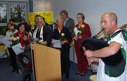 Für eine besondere Überraschung bei der Abschiedsfeier sorgte ein Chor der WKK-Mitarbeiter, der zur live gespielten Dudelsack-Musik ein selbst-getextetes Lied sang. Und auch Theater gab es: Dr. Johannes Geisthövel, ärztlicher Direktor und Chefarzt der Chirurgie, spielte mit Gabriele Antkowiak einen selbst erdachten Sketch.