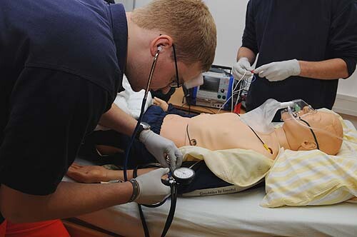 Die Schulung am Gerät ist aufwendig, wird aber in der Rettungsdienst Akademie sehr intensiv betrieben. Bei jedem Durchlauf überwacht ein Dozent die Abläufe, oft unterstützt durch einen Techniker. Die kleinen Teams der Auszubildenden haben dabei die Aufgabe festzustellen, was dem Patienten fehlt, und die lebensrettende Behandlung einzuleiten. Dazu stehen den Azubis nahezu alle Möglichkeiten eines modernen Rettungswagens zur Verfügung, also zum Beispiel Beatmungshilfen, Medikamente oder auch Defibrillatoren für den Einsatz bei Herzstillständen.