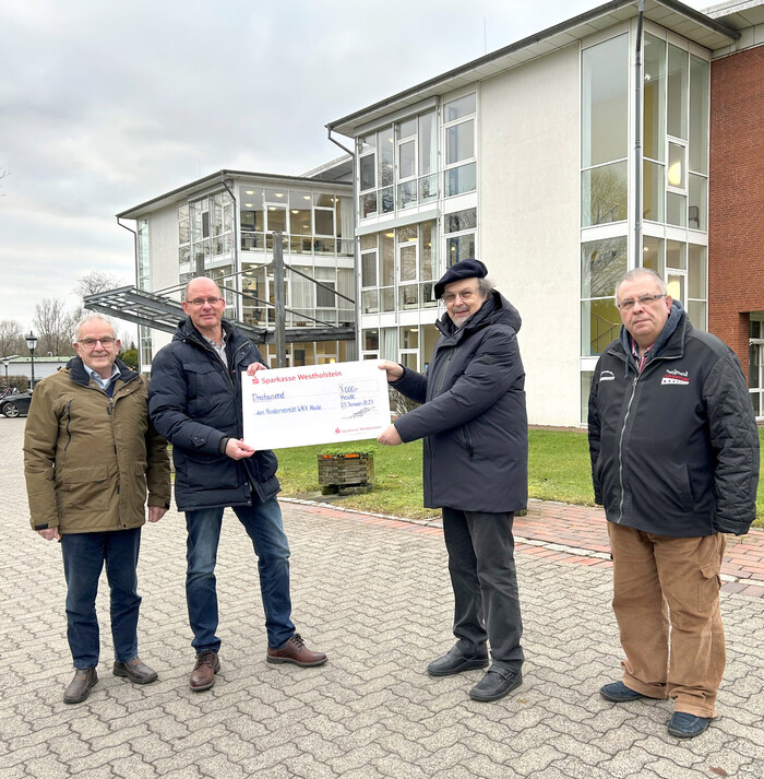 Der Verein konnte das Geld nicht zuletzt dank der regelmäßigen Spenden des Heider Spediteurs Henning Schmidt zur Verfügung stellen. Auch jetzt überreichte Schmidt wieder 3000 Euro an den Vorsitzenden des Fördervereins, Prof. Fritz Sixtus Keck und seinen Stellvertreter, Hans-Harald Böttger sowie Schatzmeister Günter Ratke. Das Geld hatte die Spedition durch den Verzicht auf Weihnachtsgeschenke an ihre Kunden gespart.
