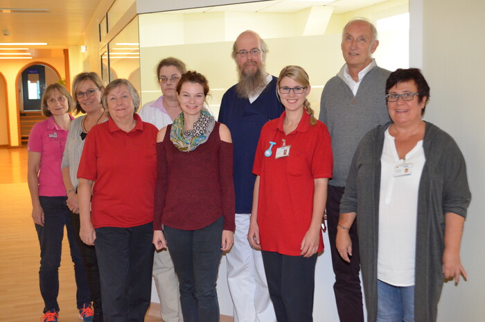 (Hintere Reihe v. li.) Carsten Keil, Ltg. WKK Vitalis – Therapiezentrum, Prof. Dr. Peter Michael Osswald, Leiter Schmerztherapie, Daniela Ahlf, Ergotherapeutin, Dr. Hans Günter Linke, leitender Oberarzt, Uta Jordan, Musiktherapeutin (Vordere Reihe v. li.) Dr. Anke Lasserre WKK-Geschäftsführerin, Elisabeth Leßlich, Ltd. Pain Nurse, Inge Kardel, Physiotherapeutin, Benita Werner, Pain Nurse, Chiara Rossi, Dipl. Psychologin, Landrat Dr. Jörn Klimant. (Foto: WKK)