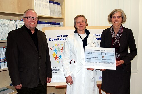 Freuen sich über die Spenden der Mitarbeiter (v. li.): Betriebsrat Wolfgang Coltzau, Chefärztin Priv.-Doz. Dr. R.-Christiane Seitz, Personalchefin Maren Dobelstein.
