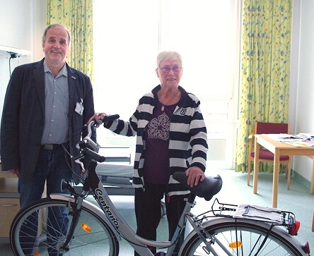 Heide - Der Hauptgewinn bei der Verlosungsaktion am Tag der offenen Tür im Haus D des Westküstenklinikums Heide ist an eine Patientin des WKK gegangen. Betriebsratvorsitzender Matthias Stecher übergab ein Fahrrad an die freudestrahlende Gewinnerin, Sigrid Peters. Zurzeit befindet sich die glückliche Losbesitzerin als Patientin auf der Station G3 im WKK und wird regelmäßig von ihrem Ehemann besucht - so auch am Tag der Übergabe. Auch er freute sich auf die nächste Fahrradtour und nahm das Rad sogleich mit nach Hause.