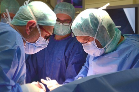 Ein Team der Klinik für Viszeral-, Thorax- und Gefäßchirurgie während einer Lungenoperation. (Foto: WKK)