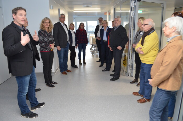 Die Vertreter der Ratsfraktionen hatten sich im Rahmen eines Rundgangs über die laufenden Umbauarbeiten informiert. Geschäftsführerin Dr. Anke Lasserre führte die Lokalpolitiker über die Anfang des Jahres fertiggestellte Station 3 und die im Februar eröffnete Notaufnahme und Intermediate Care Station.