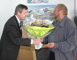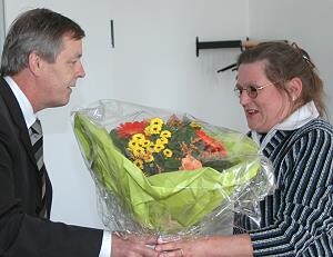 Im Rahmen einer Feierstunde überreichte Detlef Paulsen, stellvertretender Vorsitzender des Aufsichtsrats der Westküstenkliniken Brunsbüttel und Heide gGmbH (jeweils links), Blumensträuße an die Krankenschwester Judith Tolksdorf und an den Krankenpfleger Laif Wermke. Während Paulsen Frau Tolksdorf für ihr 25-jähriges Arbeitsjubiläum ehrte, wurde Wermke in den Ruhestand verabschiedet. (Fotos: Kienitz)