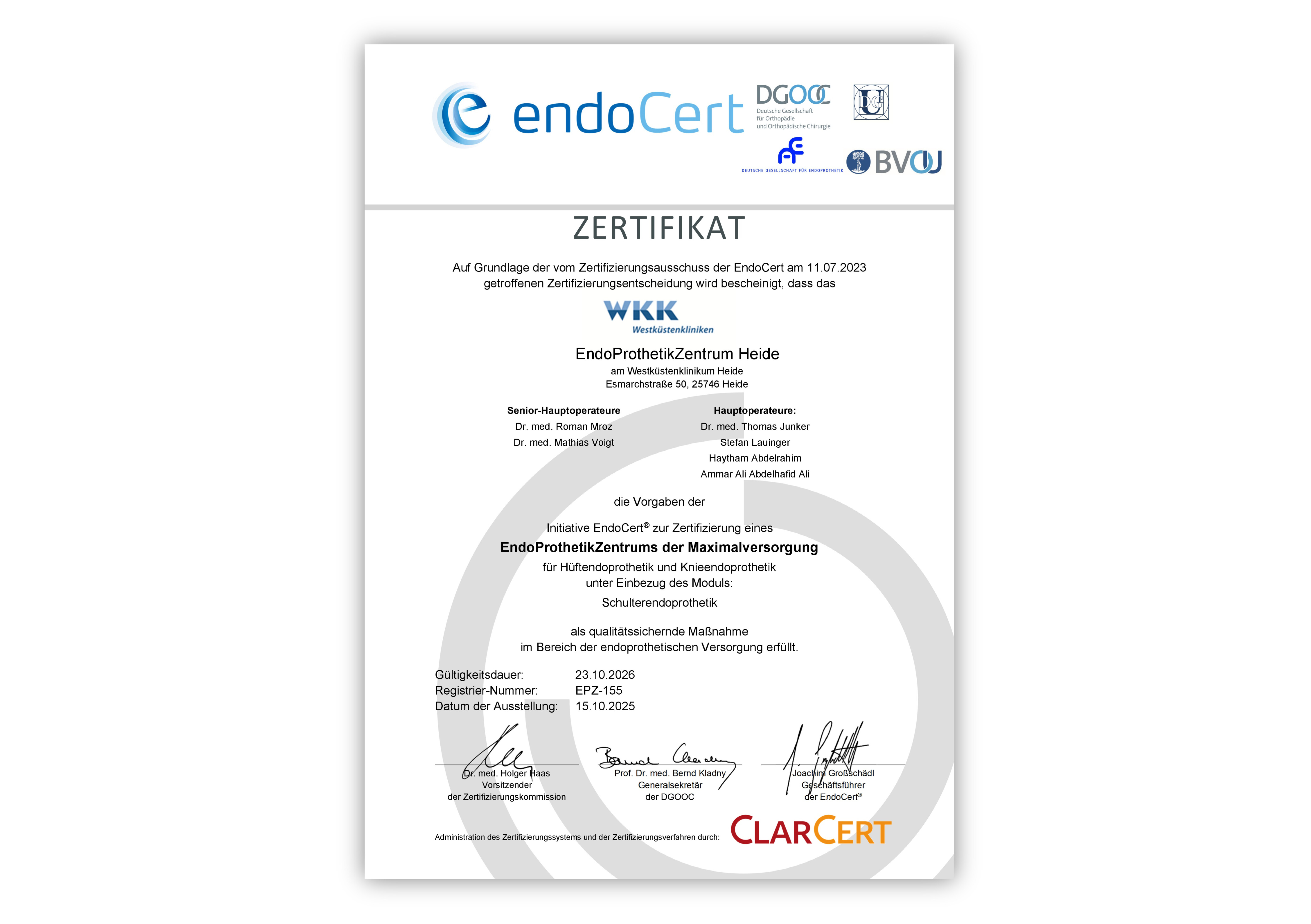 Zertifikat EndoProthetikZentrum der Maximalversorgung Heide