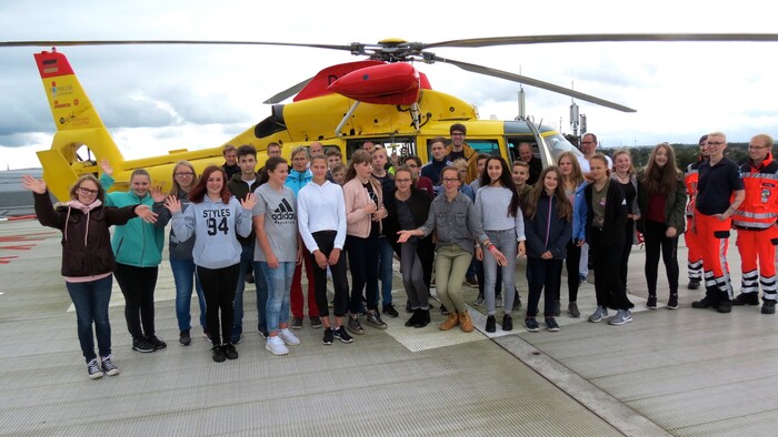 Anschließend gab es die Gelegenheit, auf dem Dachlandeplatz des Klinikums einen Offshore-Helikopter der Firma Northernhelikopter zu besichtigen und bei Landung und Start, das in Sankt Peter Ording stationierten, hochseetauglichen Rettungshubschraubers, zuzusehen.