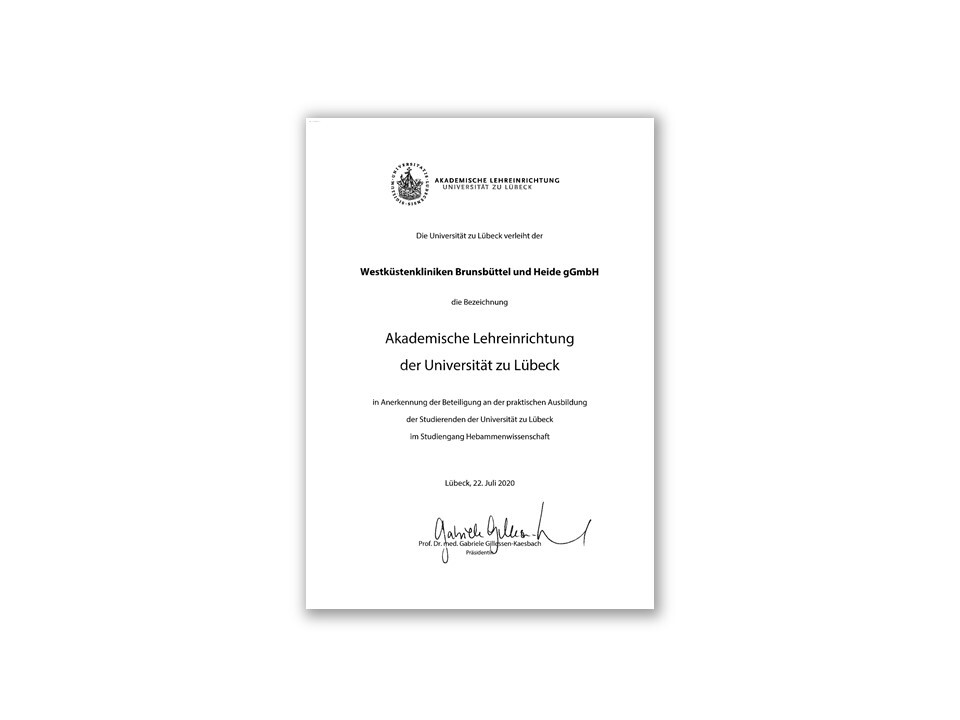 Wir kooperieren beim Studium der Hebammenwissenschaft mit der Universität Lübeck. Mehr Informationen finden Sie hier.